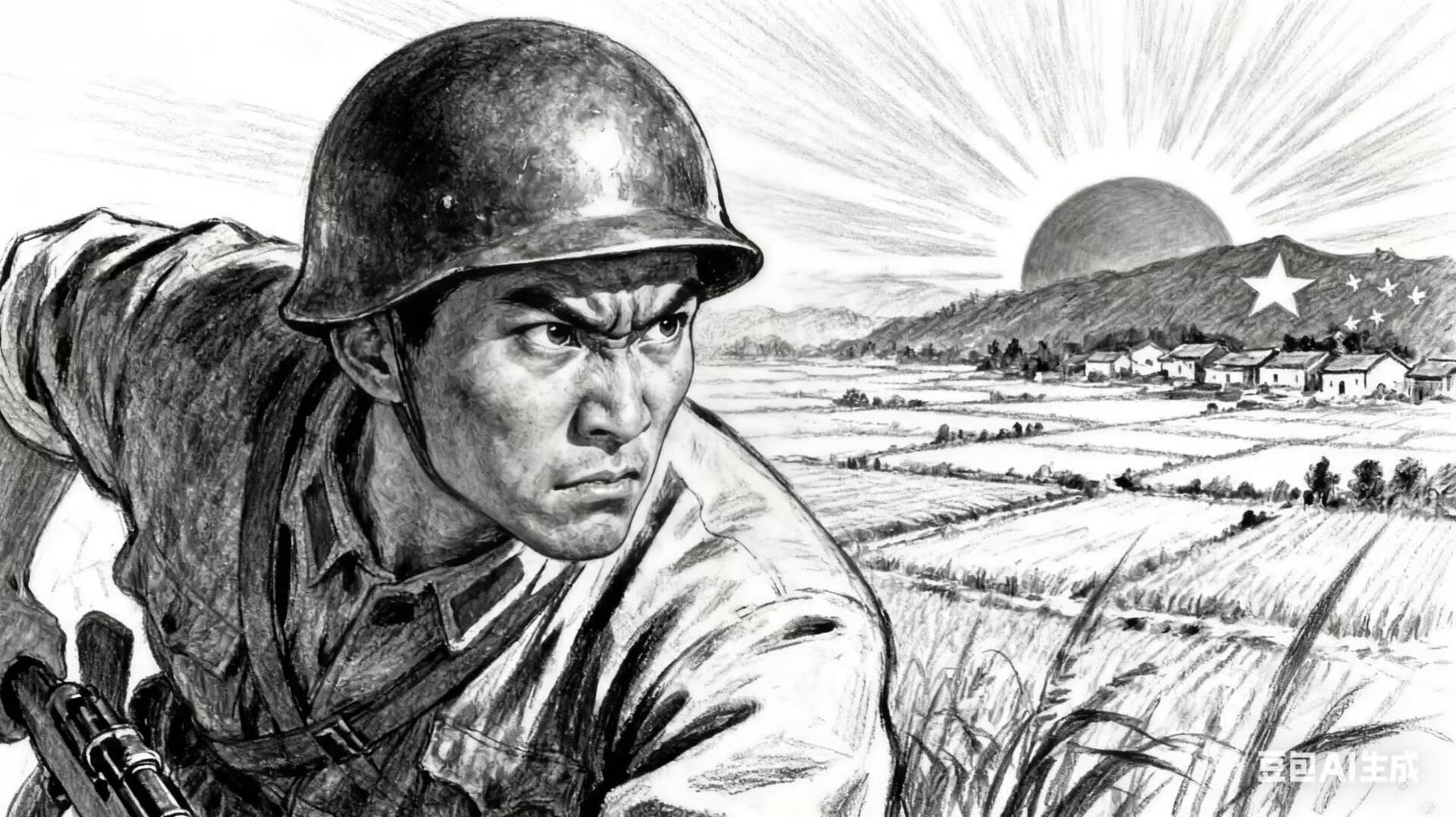通过刻画一位在黑白压抑环境中,毅然面向光明冲锋的战士形象,赞颂了那种在绝境中因信念而生、为守护家园与理想而战的无畏勇气和牺牲精神。它传达了一个核心信息:希望并非被动等待,而是需要用坚定的行动去争取的目标;真正的勇气,是在看清前路艰险后,依然能向着希望之光,发起义无反顾的冲锋。