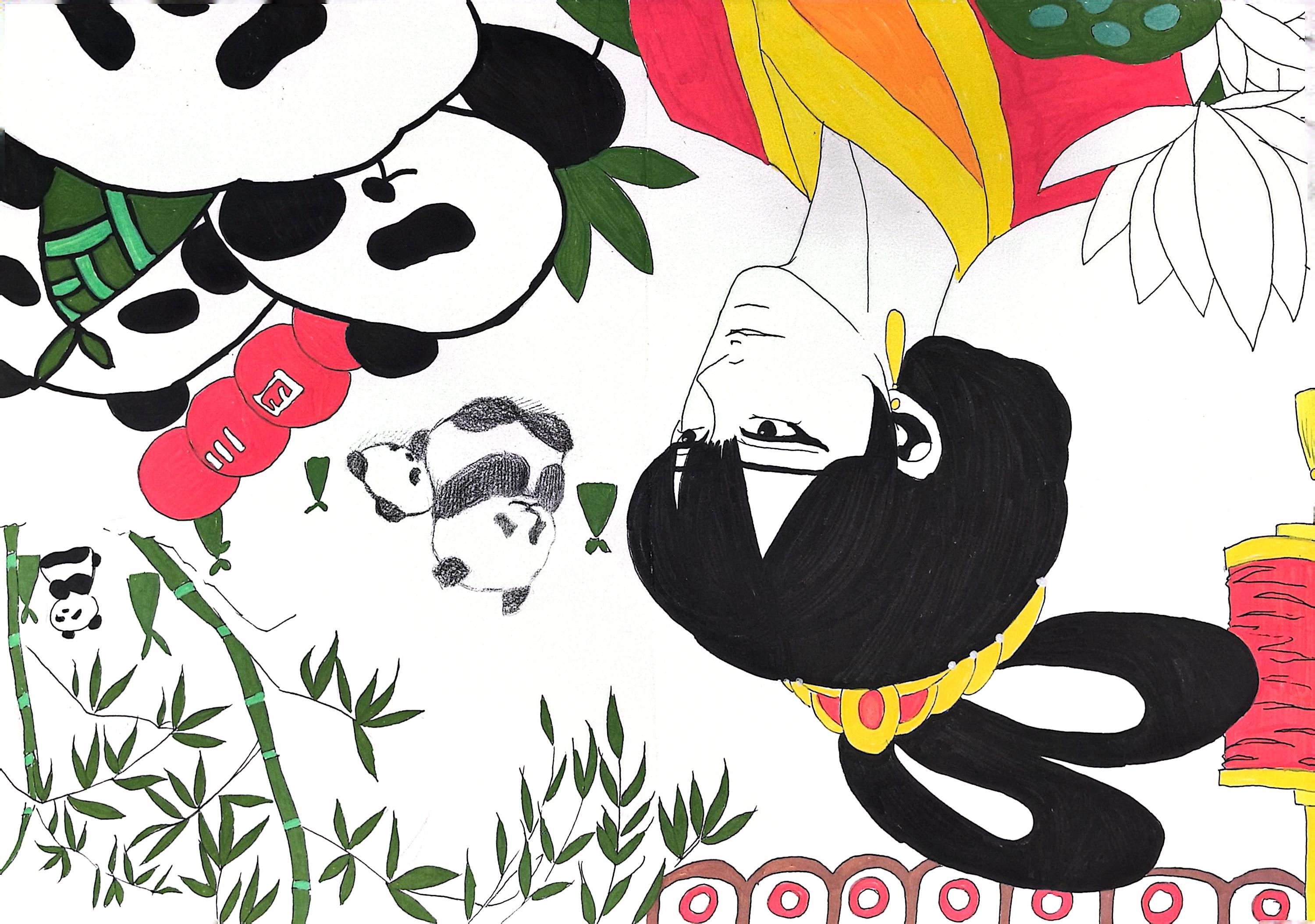 我的作品主要由熊猫和一位身着汉服的好,目的是想让更多的人了解到中华文化中的汉服。汉服是汉民族传统服饰体系,承载着华变礼仪文化与工艺美学,熊猫是我国的国宝,也是我的家乡四川成都的重要象征之。希望大家可以从我的作品中看到熊猫的可爱,汉民族传统服饰的美丽,可以来到成都旅游,亲自体验汉文化的悠久历史。