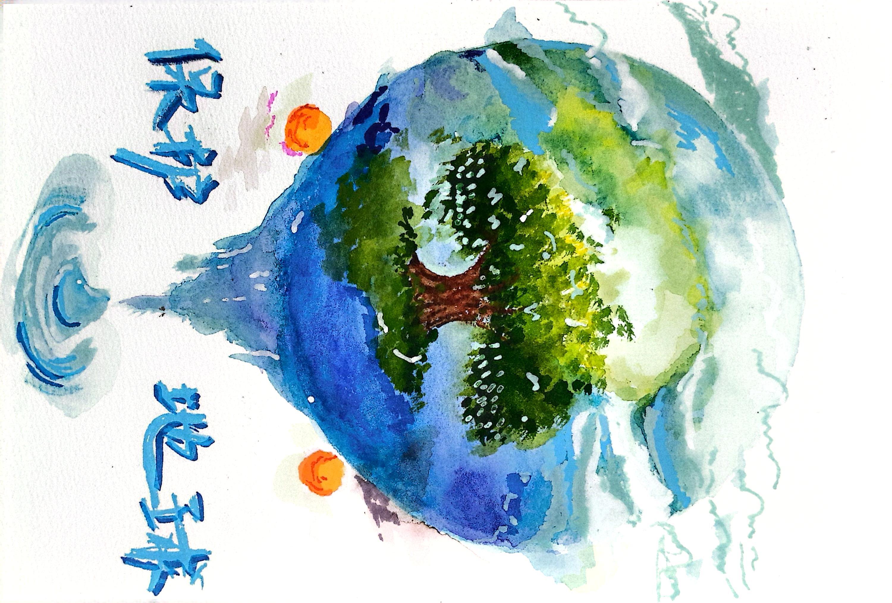 随着社会的发展、科技的进步、工业的污染越来越严重,烟囱里的滚滚浓烟直冲云天.侵占着洁白的云朵。河水变浑浊了,天空变灰了。溪流藏起来了.森林也减少了.各种鸟儿的数目都在减少、人类的淡水资源也所利无已. 我希望我们的地球从重变回原来的那颗蔚蓝色的星球,白色的云朵.自在地在天空中飘着.飘着.绿色的树木再次叠越于地球的每一寸荒漠.河流小溪在山涧欢快流淌画面:一个巨大的.充满生本的葫蓝色星球.一棵巨大茂盛且翠绿的大树体现了地球上的生机与希望,大片的白云也标志着大气污染的减轻.蓝色的大面积水域也体现了水污染的治理.地球上的可利用淡水资源也已乎发出来.多得"流下来了"。"愿美好的地球永远年轻美丽!