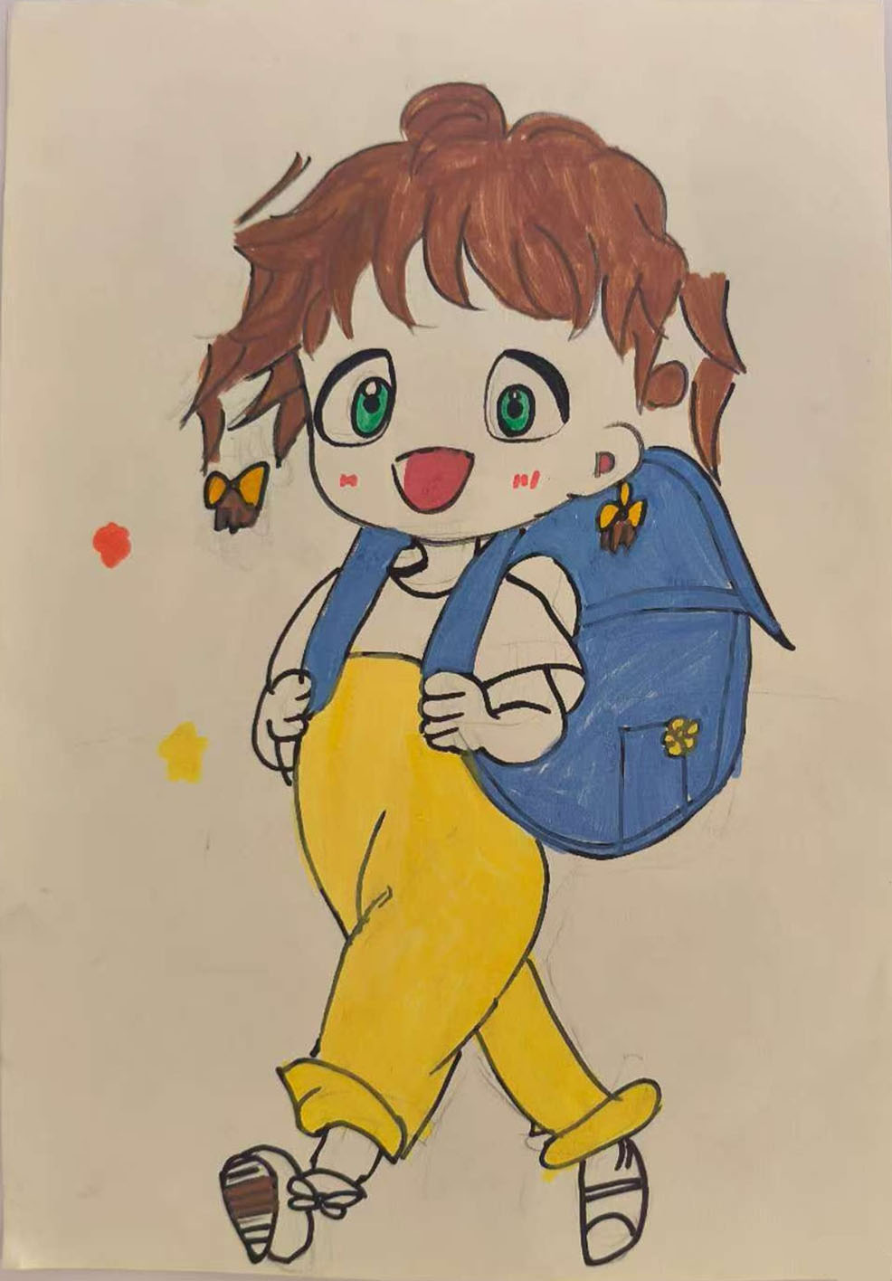 上学是我最快乐的一件事儿,清晨的阳光洒满了一路,伴着我走向可爱的学校。 小鸟儿们叽叽喳喳,和我们的嘻嘻哈哈的欢笑声想伴,一蹦一蹦的向校跑去。 背上的小书包鼓鼓囊囊的,那内容可丰富了,有我最心爱的卡通人物哪吒,还有我最爱吃的小吃旺仔饼,今天我要和我的同桌一起去分享,还有我最喜欢看的小人故事书《孙悟空大闹天宫》,还有老师给我们上课用的手工书…… 路过小树林还会捡一些小树叶,小草也装起来,我们在课堂上还要用这些小树叶小树枝小草去做手工做品呢。 路边的老爷爷老奶奶看着我们蹦蹦跳跳走过来,笑蜜蜜地看着我们,我们还向他们招招手。而草叶上的露珠儿可就要我们踢足球的动作下飞花四溅满天飞舞了。