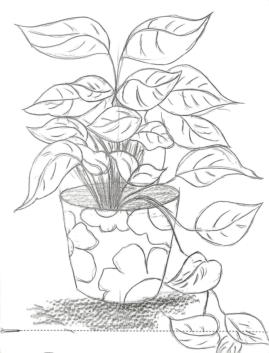 1. 《蔓生》:这幅素描以简洁线条勾勒绿萝,叶片舒展,藤蔓悄然探出身姿。花盆似默默的容器,托着蓬勃的绿。每片叶、每缕蔓,都在静态画面里藏着生长的力量,像在诉说:生命虽以素笔呈现,却满溢着不停蔓生的热烈 。