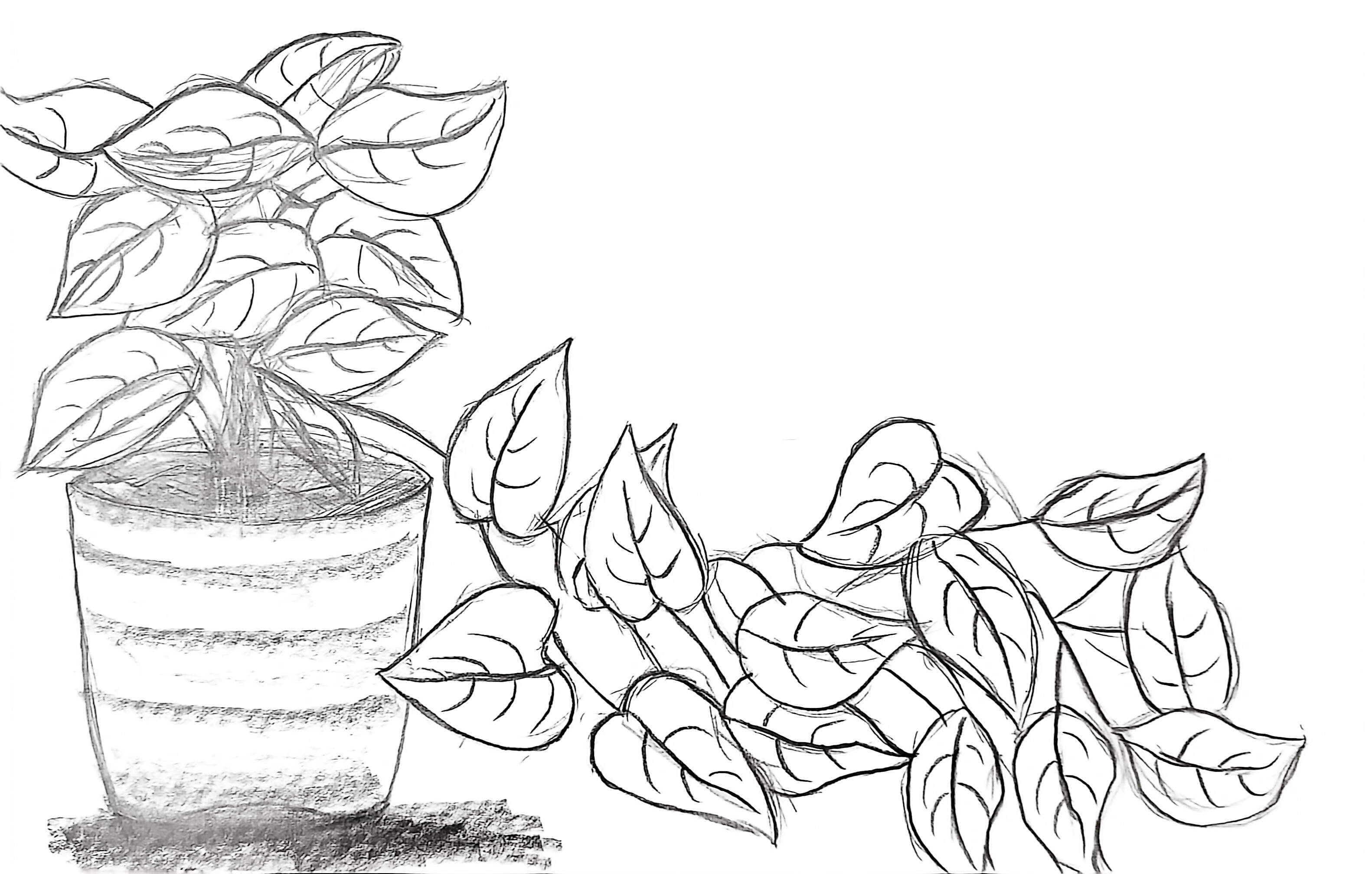 《逸蔓》:逸,是藤蔓舒展的自在姿态。素描中,绿萝挣脱花盆束缚,垂蔓随性延展,叶片似在微风里轻晃。简笔勾勒间,把绿植的悠然逸趣留住,让这盆青萝,成了困于纸间却又挣脱桎梏的鲜活生命,透着散漫又蓬勃的劲儿 。