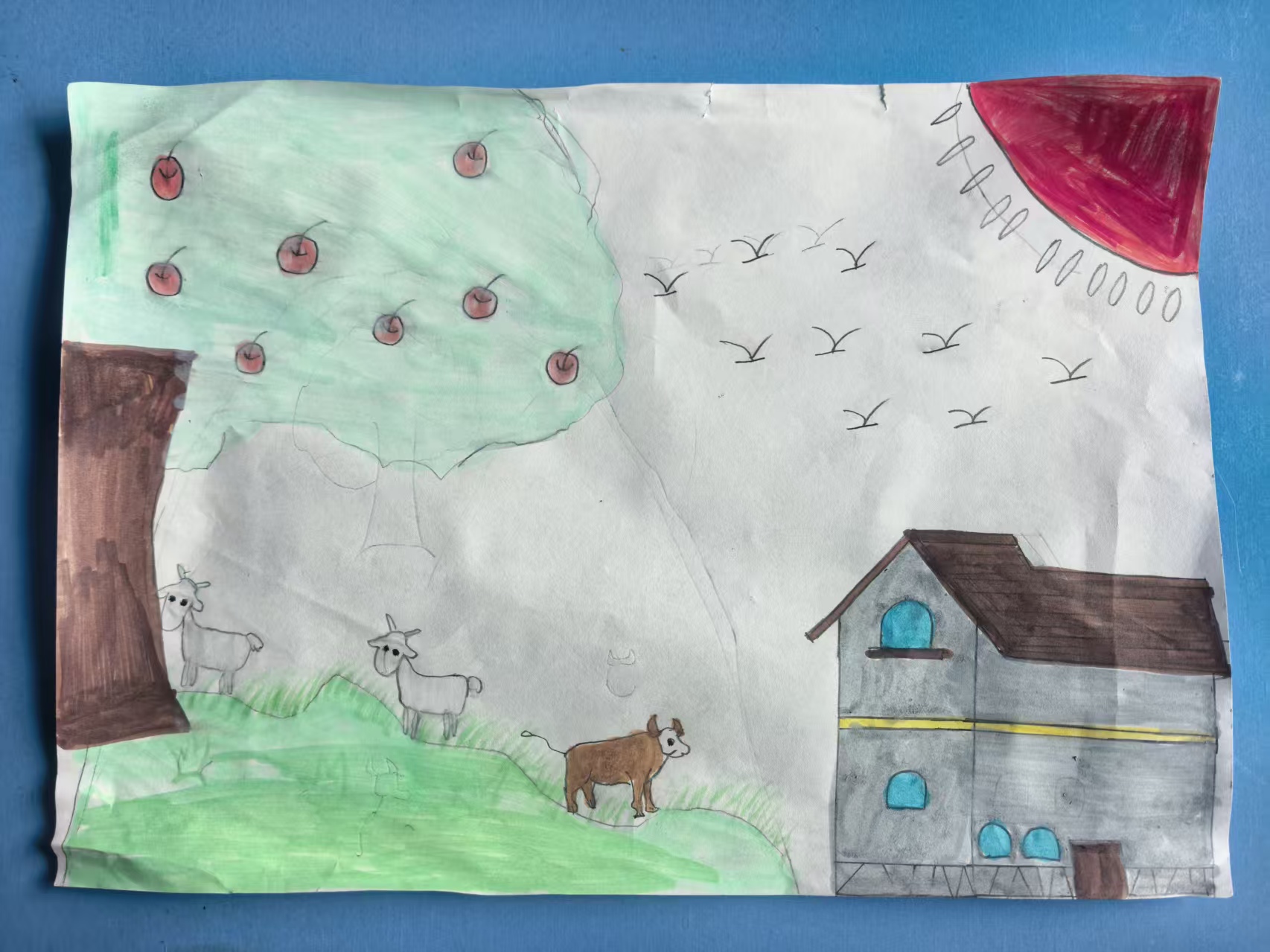 我爱我的老家!原来我的家在山里,那里有长满青草的山坡,有成片的树林。每当放假我就能和爷爷去山上放牛羊,牛羊自由的吃草,我就可以躺在草地上晒太阳,爷爷一边照看牛一边在地里干农活。看见房顶炊烟升起的时候,我就知道该回家吃饭了。那种悠然的生活真让人留恋。我爱我的老家!