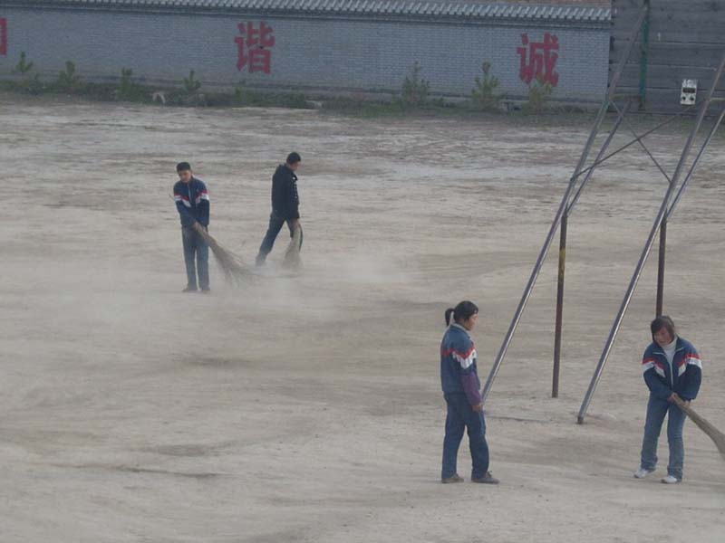 在以前我们打扫卫生的时候都是拣掉地上的石头纸屑,然后对特别脏的地方进行大扫除,而现在不同了,所有的地方都要细扫一遍,而且对于难扫的地方要反复打扫。最后还要洒上水。