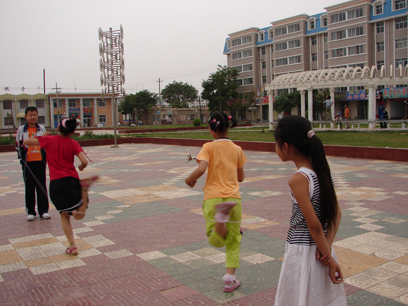 星期六的早晨晴空万里,妹妹写完作业和几个同学来叫我一起去玩,难得妹妹赏脸,当然要去光顾一下我们那许多的玩具,我们一起来到广场,首先我们玩的是跳绳,跳绳的玩法有很多,因为我不是很会玩,就先给他们绕绳了,不过还是有几分乐趣的,我们时而翻身跌起,时而像猴子一样,钻地洞,或走猫步,我们玩的很是高兴。慢慢的我也学会了。