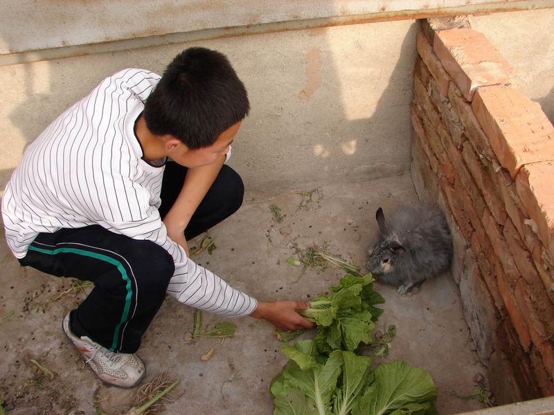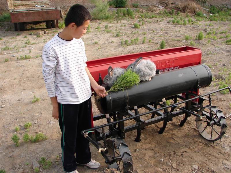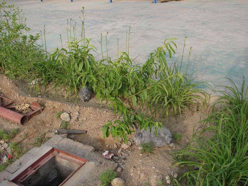 吃中饭了,大家都到屋里去吃饭了。待到从屋里出来后,怎么也找不见小灰免的倩影了。弟弟和我急得直呼唤"免免出来……","乖乖出来……",在花丛是找了半天也没找见它们。正急得大家团团转时,家里的看门狗却朝着院墙边的机器堆那边叫了几声。弟弟灵机一转,小灰免是不是钻那去了呢?果然,经过大家的仔细搜寻,果真发现它们藏在机器底下了。原来小灰免也到了吃饭时间了,我们却没给它们准备,便溜到机器底下找草吃去了。