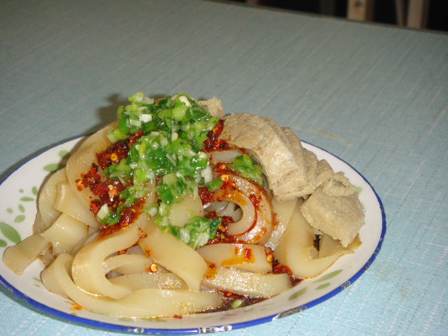 怎们样?方法简单吧!可别小瞧了,酿皮作为传统小吃,它可有传统的魅力,自己制作的酿皮色、香、味、质都远比不上专业师傅的。他们在长期实践中,掌握了独到的技艺,制作工序、佐料都非常讲究,他们制作的酿皮才是道地的"青海酿皮"