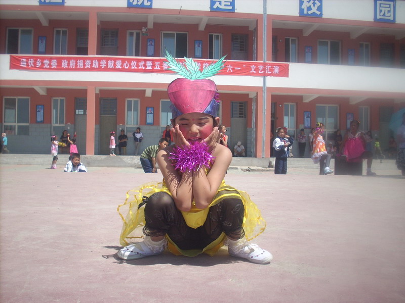 在我们学校这次举办的六一节目中,一年级的几个小朋友表演的“拔萝卜”非常引人注目,起先是一个小女孩扮演的大萝卜上场。她身穿一件黄色的裙子,头上戴着画有萝卜的头带,动作敏捷。其次,是一个小男孩扮演的“老爷爷”上场了,他的扮相很可爱,也很逗人。他小脑袋上包着一块白色的毛巾,身上穿着黑灰色的衣裳。最有趣的是他鼻子下面戴着一撮胡子,加上他走路的姿势,更像一个老爷爷,很有特点。