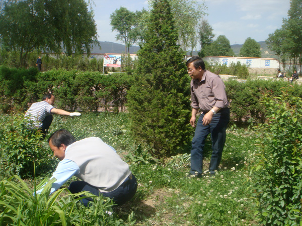 不一会儿,花园里的人多了,今天是学校党支部号召全体党员、入党积极分子、学校中层领导,参加"美我校园、呵护花园"活动。主要任务是清除花园里的杂草,还原还原美丽的本色。