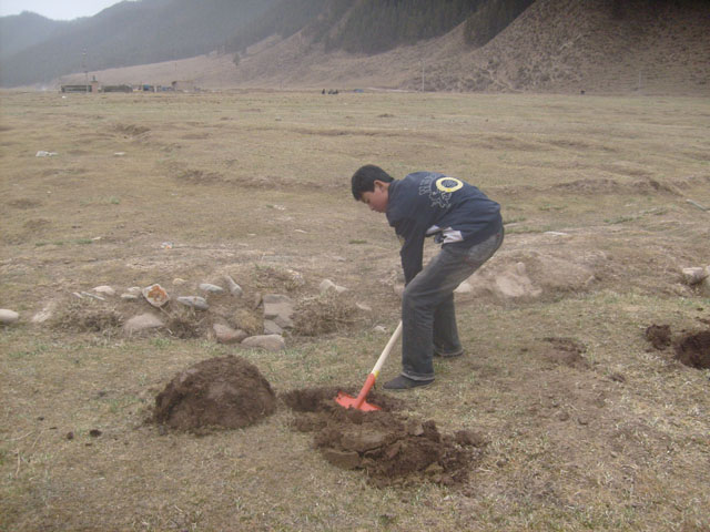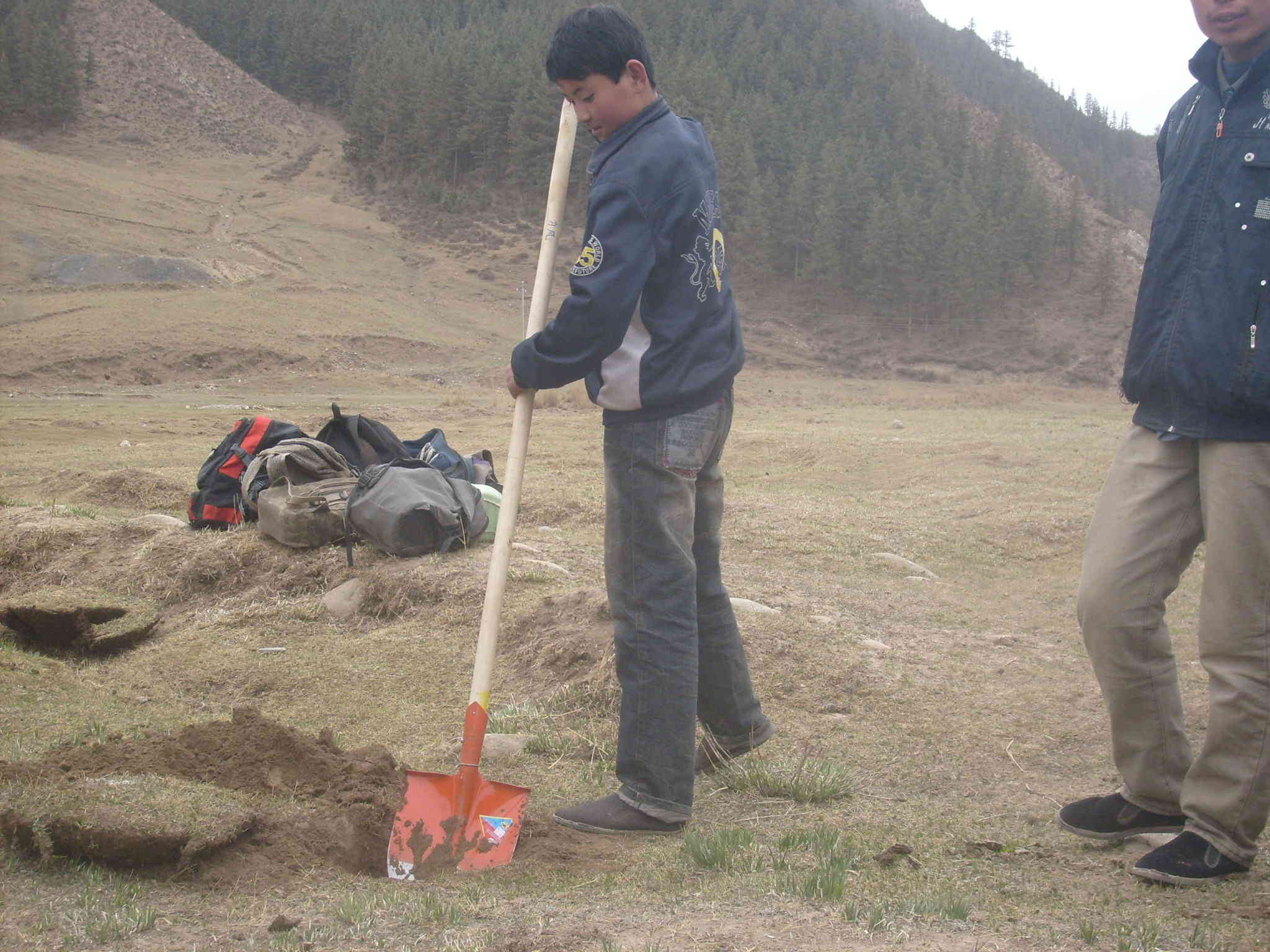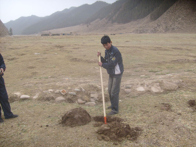 大约十分钟后,同学们开始植树了。瞧!同学们都拿起手中的铁撬开始挖坑了。早上还眉开眼笑的周玉雄,现在已没有了早上的开心笑容了,而是卖力的在挖坑。几分钟后他已经累得汗流满面了。他额头上渗出了晶莹的汗珠,再看看他挖的那一个个深深的大坑,真叫人佩服赞叹不已。