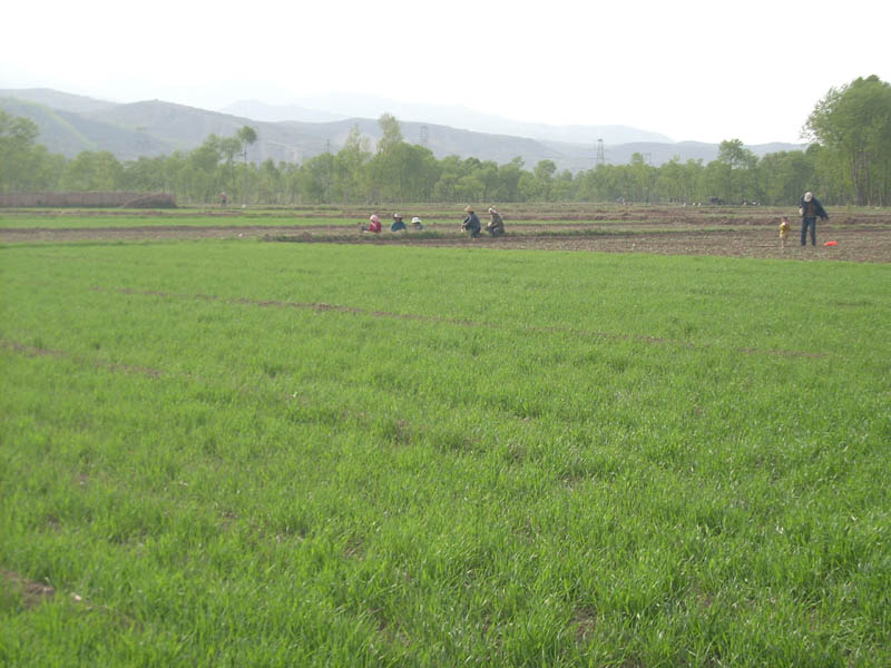 接下来是麦田的绿色汪洋,倘若有风,那麦田就一层一层的泛起了绿色的浪花,在黄土上汹涌,打滚。那是一种绿意,绿的可以给人安宁,舒适和一份惬意,绿的招人喜爱,
