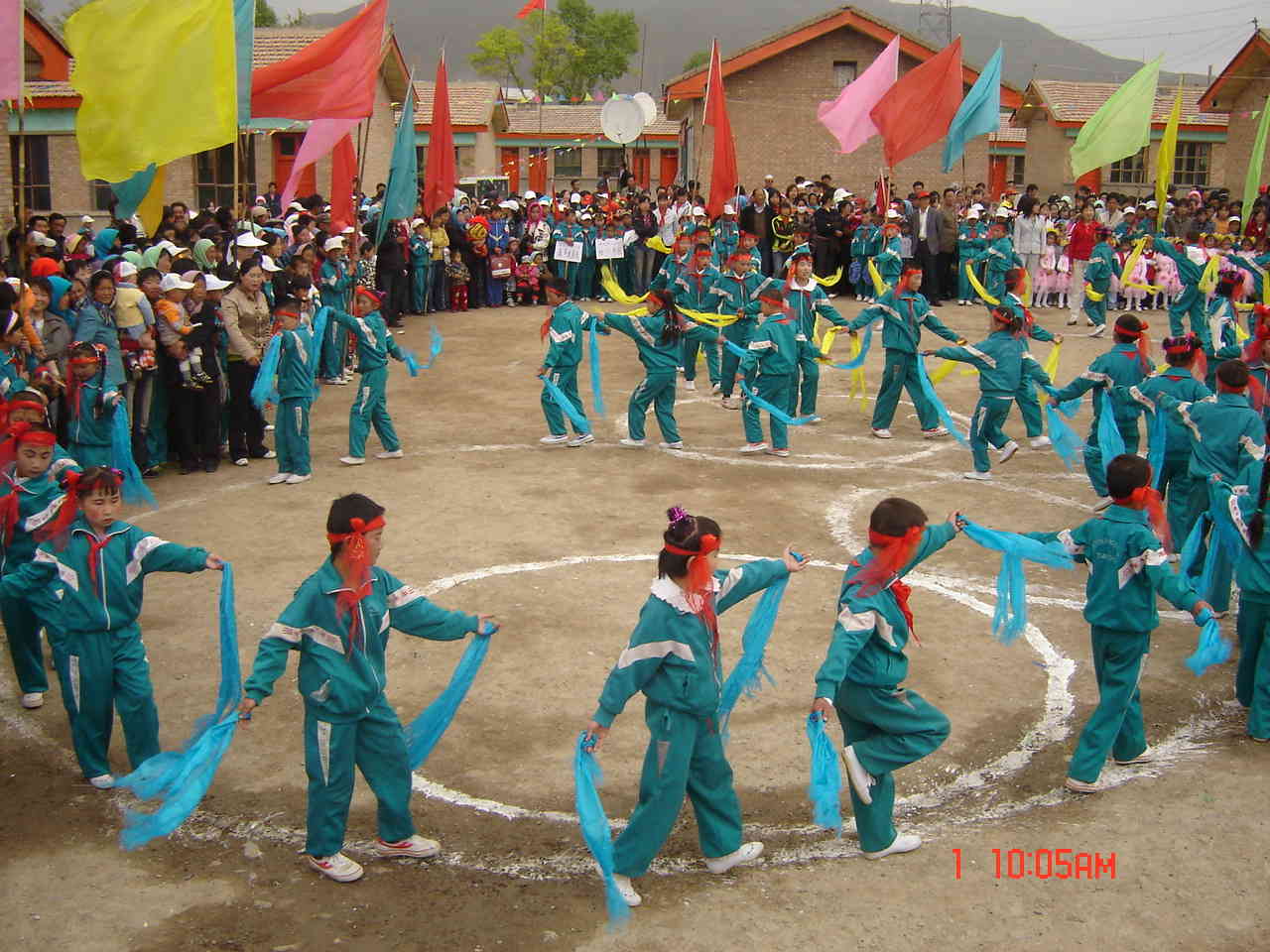 瞧,这就是我们班的同学在表演锅庄舞。我们手拿五彩的哈达,头扎鲜红的纱巾 ,身穿整齐的校服,随着优美的音乐,绕着地上的白线圈翩翩起舞。四周围满了观众,他们大多是我们的父母,他们并不在乎我们舞跳得如何,而是看我们"丑态百出"的憨样,那一双双慈爱、赞许的目光,竟使我们有点飘飘然,跳得更起劲了。