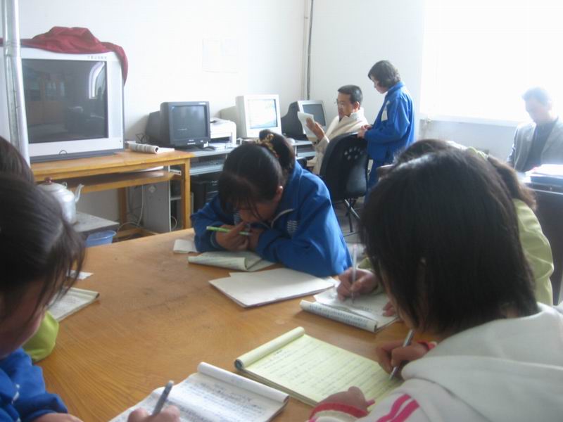 来到学校,同学们甩了甩头上的雨珠。开始了自己的写作。我们爬在桌子上认真地写着,有时会挠挠后脑勺,思考思考。一个小时过后,他们大多数同学都写完了,带着兴奋的表情,去请辅导老师修改。由于学生多,老师少,所以大多数同学都在等,少数学生在这个空档自己修改起了文章。