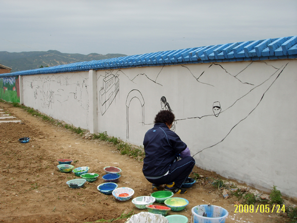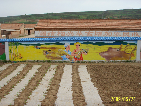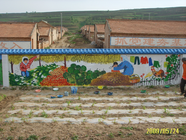 在我们泾源县淳朴好客的老百姓,近年来通过自己的努力,已经把自己的家园建设的很美好。县政府为了宣传党的富民政策,于是就请我们艺术老师在墙壁上画宣传画。