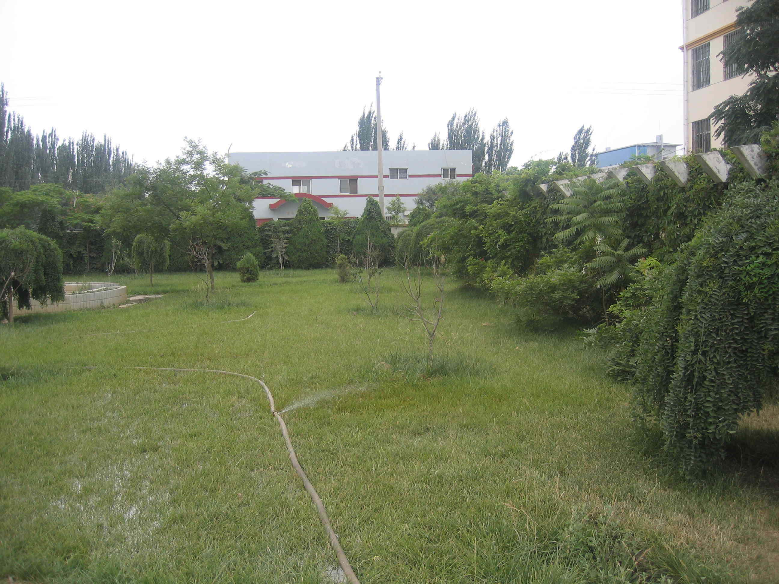 一进大门,西面是办公楼,共有四层,办公楼是浅黄色与深黄色搭配的,让人感到很温馨。办公楼是老师们的办公室以及生物,化学,物理实验室,办公楼内还有9个多媒体室,因此,办公楼是一栋十分安静的大楼。大门的东面是标准的跑道和足球场。绿茵茵的草地,给人以旺盛的活力,让人立马想运动,一上体育课,大家便疯了似的往球场上冲。在办公楼的后面,便是我们的天地——教学楼。教学楼也有四层,办公楼与教学楼的西侧有楼梯,为两座楼的来往提供了方便。教学楼的后面,是我们的车棚,大家的自行车都放在那里。