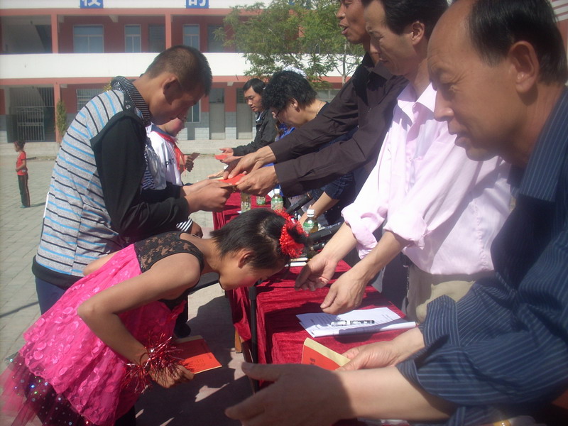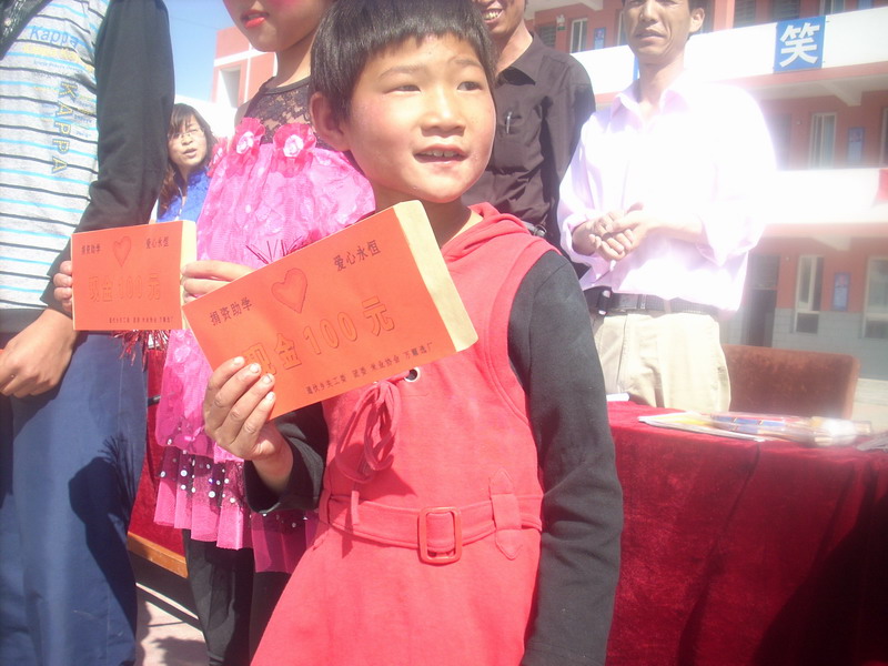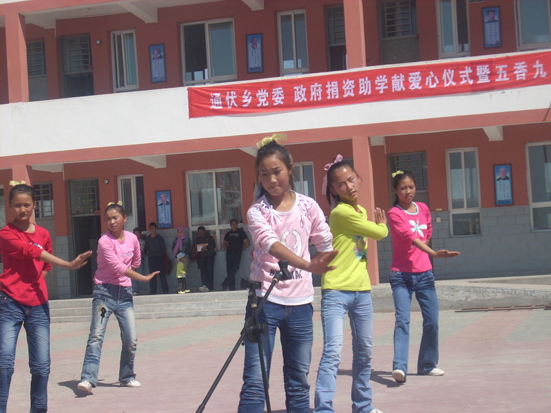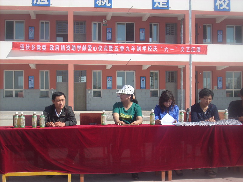 六一儿童节那天,是同学们展示文艺才华的一天,而社会各界对我们学校和学生都非常重视,帮扶单位平罗县广播电视局给我们送来了2000元的慰问金。