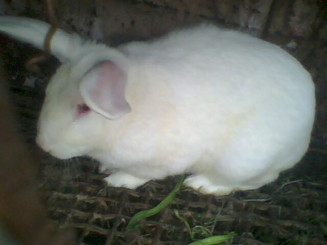 这只小白兔特别可爱,全身上下全部是白色的毛,两只耳朵竖的特别高,而且很乖!除此以外若你抱上它的时候它就会举起两只前腿作揖,好像是祈求放下它的意思!