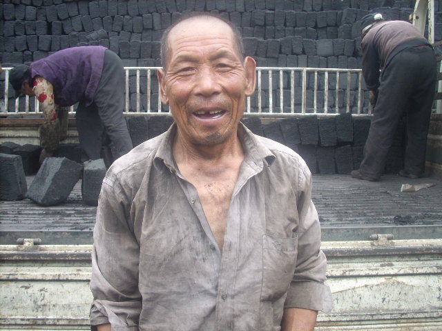 终于到了煤厂,可一切眼前的景象令我大吃一惊:五个50多岁的老人在一片一片的将煤搬到了车上,他们的额上已满是汗珠。来拉煤的车很多,他们一刻也不停的搬着,就这样也跟不上需要。