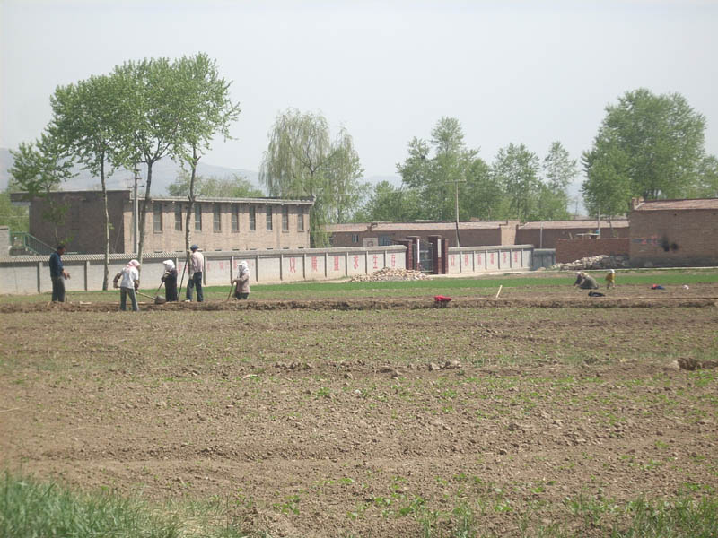 农民伯伯们走出了家门,有植树的,有锄草的,还有浇水的,田野里一片繁忙的 景象。