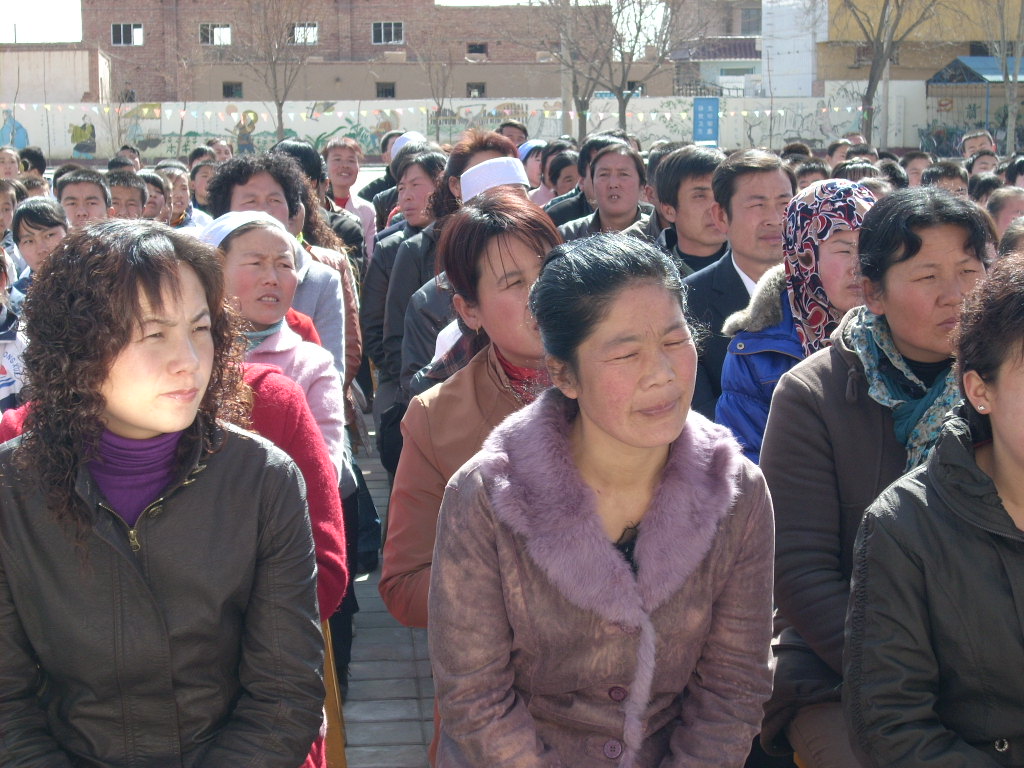 学生家长坐在学生的最中间,一共有三排,这三排就是来参加今天开学典礼的学生家长,他们的穿着打扮虽然不是很好,但是,他们把自己的孩子教育得很好,他们的孩子在学习上成绩优异,在思想品德上,尊敬老师,团结同学,遵守校规校纪,坐在这里的优秀学生家长肯定比穿一件最漂亮的衣服更高兴。