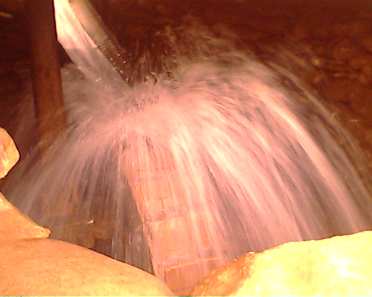 齿轮后面溅起的水花才叫壮观,急速的水流经过齿轮飞奔而来,溅起了许多水花,大家都叫它"水磨瀑布"漫天的水花在空中飞舞,真有点"飞流直下三千尺,疑是银河落九天"的感觉。在别处还享受不到呢。