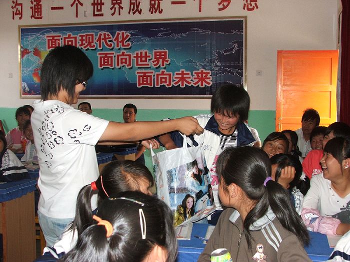 我们可爱的老师总是很高兴地与我们一起学习,一起开心。同时还把一些小小的奖品带给我们。奖品虽小,可我们的同学们把拿到那份奖品当作是一次真正的成功。看,我的这个同学也太高兴了,这是她在本节课上第二份奖品了,她甭提有多开心。
