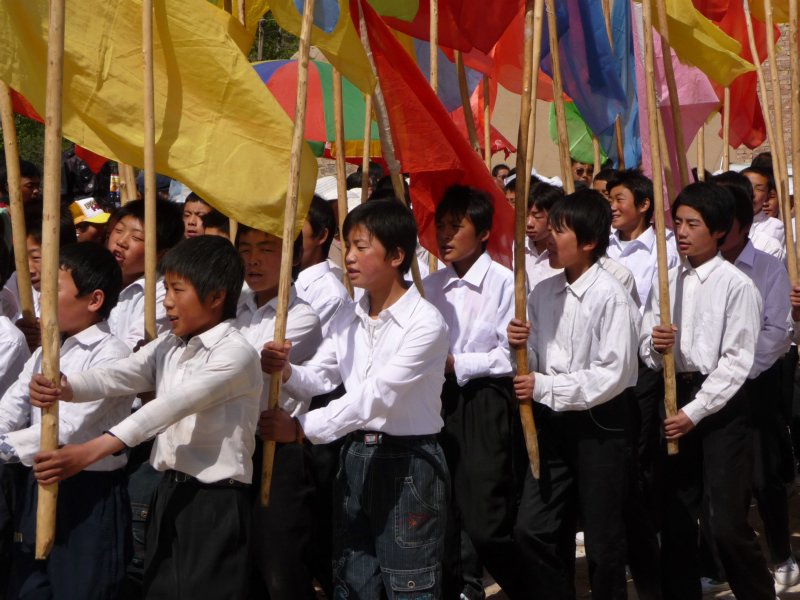 走方快队的更是整齐,头戴白帽、身穿白色衬衣,蓝色裤子。