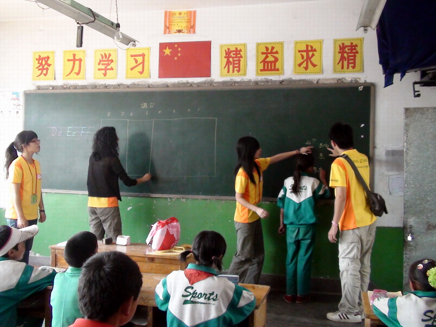 不一会儿,车子驶进了学校,学校的老师和同学们在等待着我们客人的到来,一下车互相问好,马上又开始合影,放好各自的行李,还没来得及休息,紧接着到办公室商量上课的事宜,课程安排、教案都带来了。