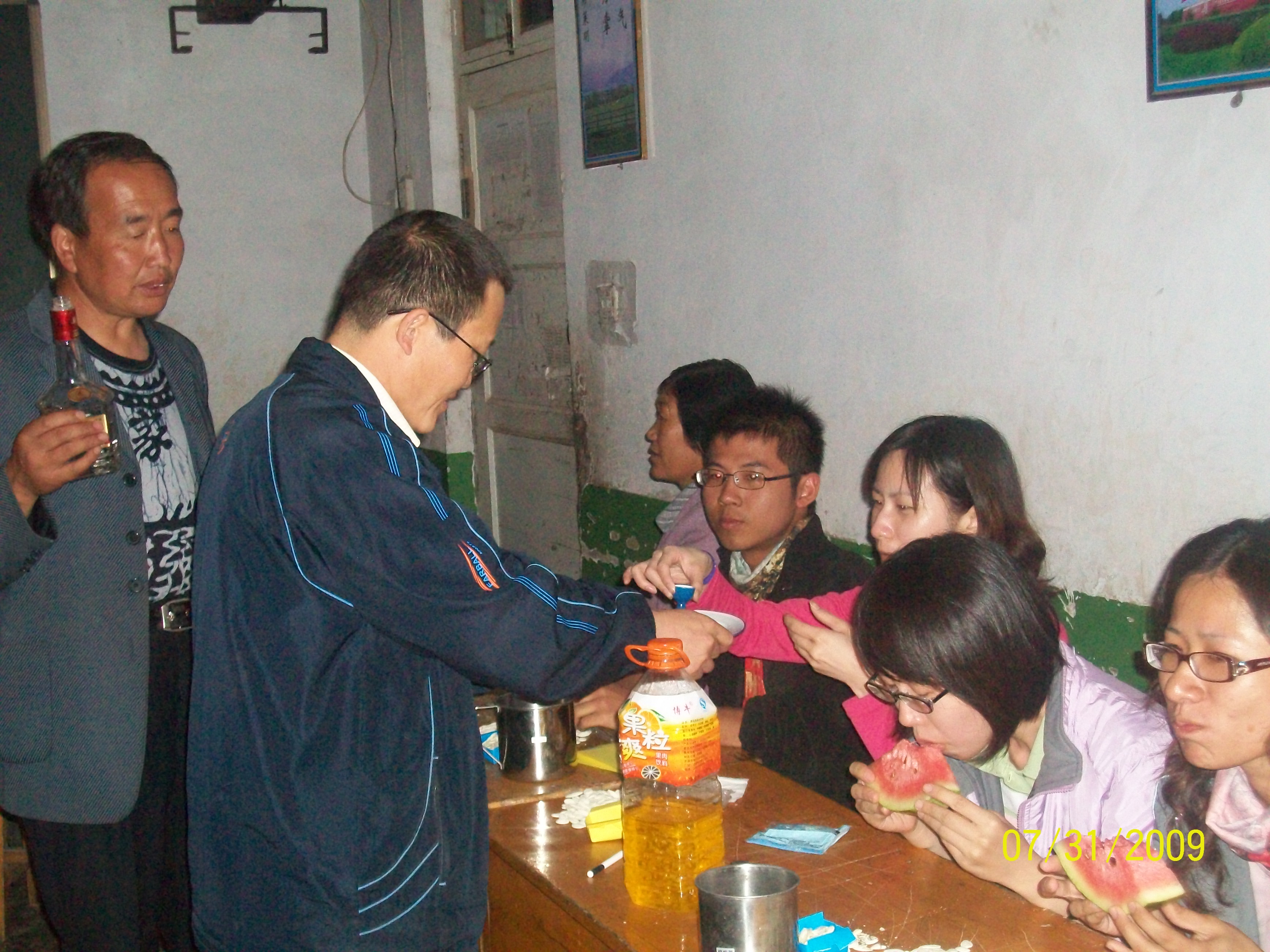 2009年8月1日台湾伊甸基金会第二梯队离开了青山乡中心学校,离别之时,泪流满面,合影留念;歌声悠扬,舞步欢快,情意永存;欢聚一堂,难忘今宵,一路平安。千言万言总有一别,一切不言中,真诚地敬酒,让所有的话语用酒来表达,喝上一杯青稞酒,祝福你们,喝上一杯青稞酒,愿你们像青稞一样发出美酒的味,给青山乡的娃娃们带来了快乐,带来了笑声,也带来了乐趣。