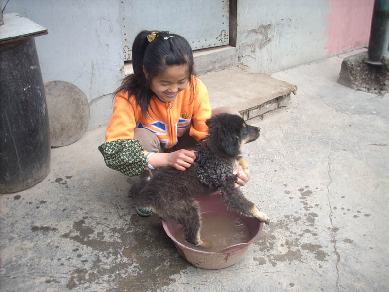不过我妹妹很喜欢这只狗。由于他的学习任务比我轻,所以在天热的时候她也会给小狗洗澡。当妹妹洗澡的时候它也是很听话的,一动不动,看起来很舒服的。