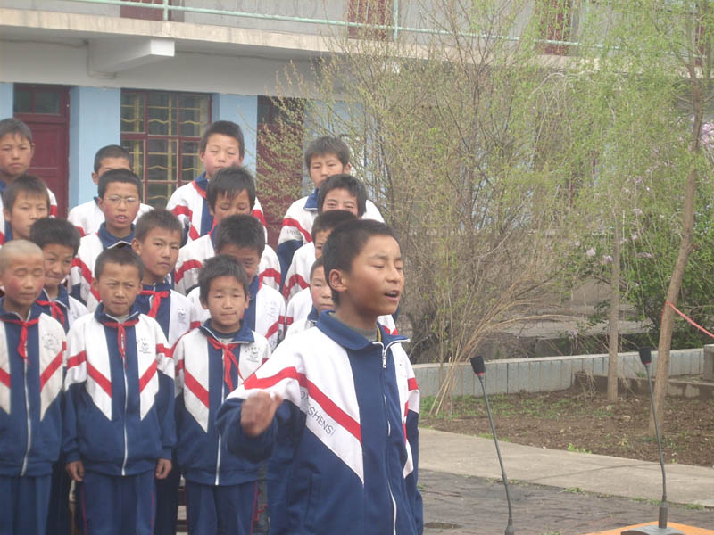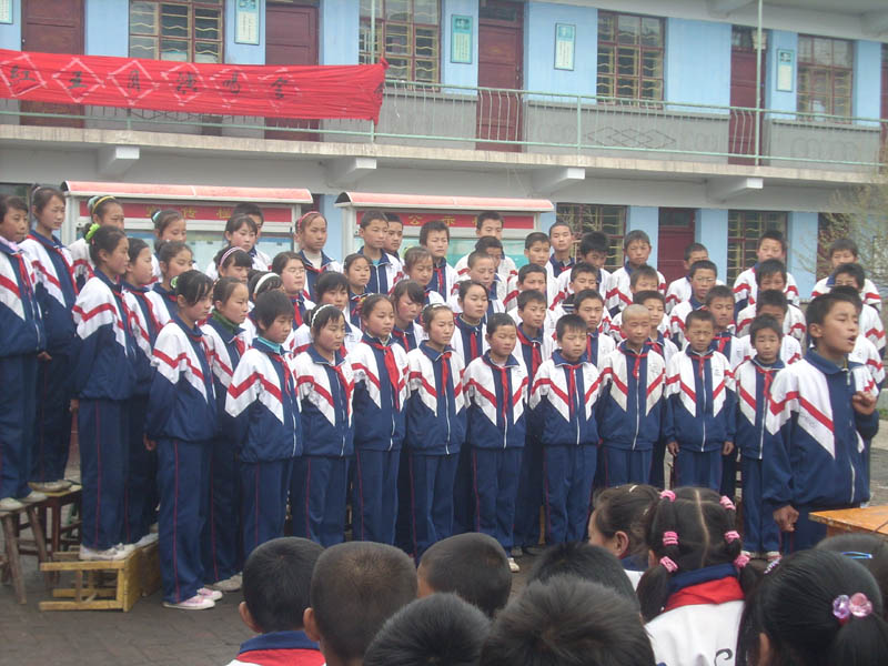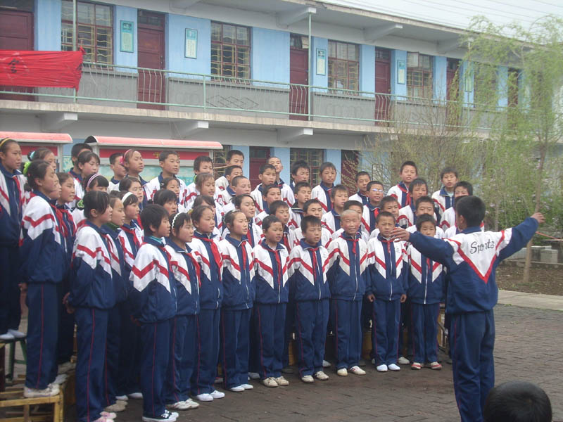 刚开始上场的时候我们班很多同学(这也包括我)都有些紧,所以声音都很小。但是越往后我们发挥的越好,唱得声音既洪亮又整齐。