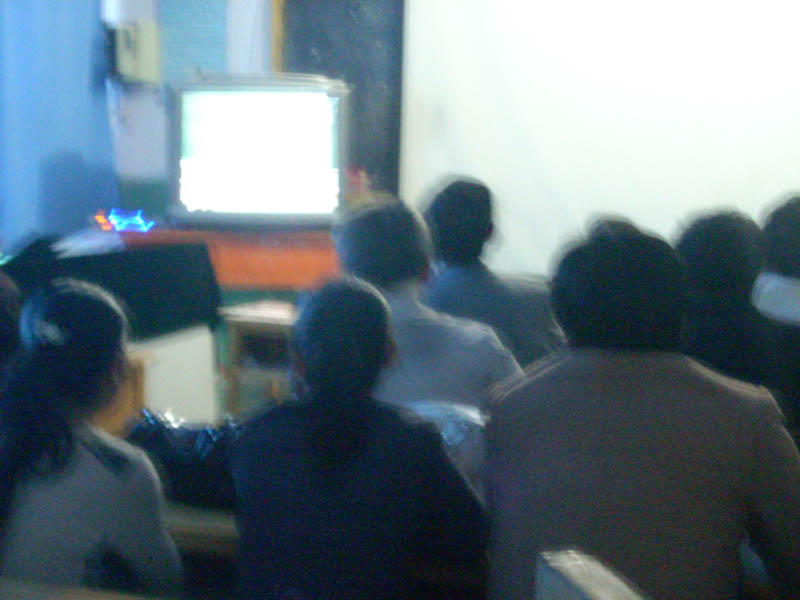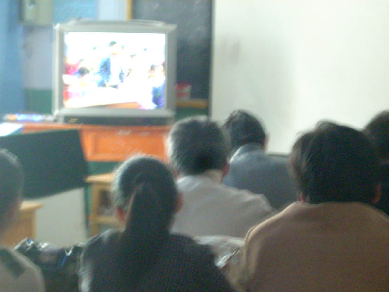 我刚到老师们的会议室里面,看了一圈真的让我大吃一惊。老师们学习的是VCD里面的内容,用我们的话说就是看碟片。但是老师们是相当认真,他们手里拿着笔,在不停的记着笔记,那个专注确实用语言无法形容。