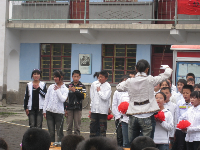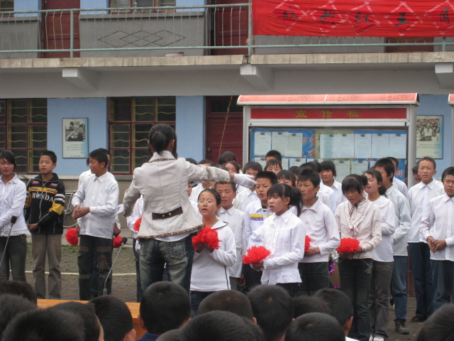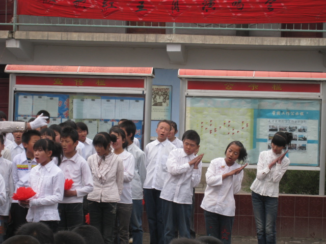 终于轮到我们班了,在指挥的指挥之下我们就开始齐声的唱了起来。因为我们练习的时间长,而且准备充分,所以我们在场上配合的很密切。当我们唱完三首歌后,台下响起了热烈的掌声,我们知道我们成功了。