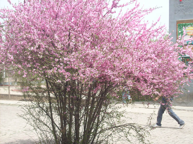我们学校的桃花一般在五一节过后绽放。此时大地还很寂寞的没有一点绿色。因此,桃花的盛开给我们学校带来了一片生机。难怪老师们都喜欢在太花树下来给我们讲题,也许是老师们被这桃花所打动吧!