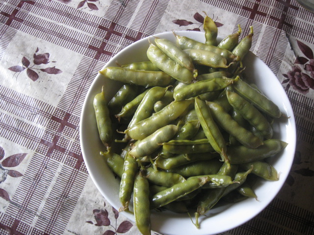 等到豆子再长一段时间后,外形看起来鼓鼓的,这时的豆角就不能直接吃了,得把它们摘下来放到锅里加水以后煮熟了再吃,又是另一种味道,并不比新鲜时的豆角逊色。