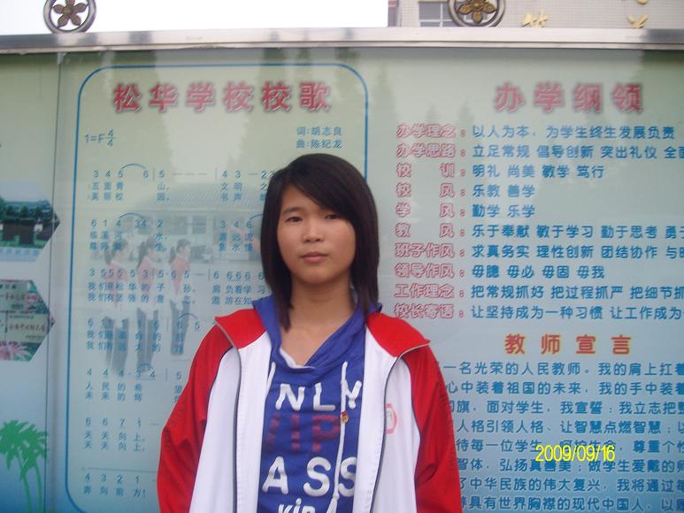 俗话说,生命在于运动。虽然她是个女孩子,千万别小瞧她,在体育方面她可是顶呱呱的,并不比男生弱。而在所有的体育活动中,她最喜欢的就是篮球和排球。篮球方面的佼佼者,在学习方面却让大家操了不少的心。一提到学习,她就头疼,关心她的人更头疼。为此,她下了不少的决心,加油再加油。虽然现在的她并不像以前那么讨厌学习了,但是对于理科似乎还是不怎么"感冒"。