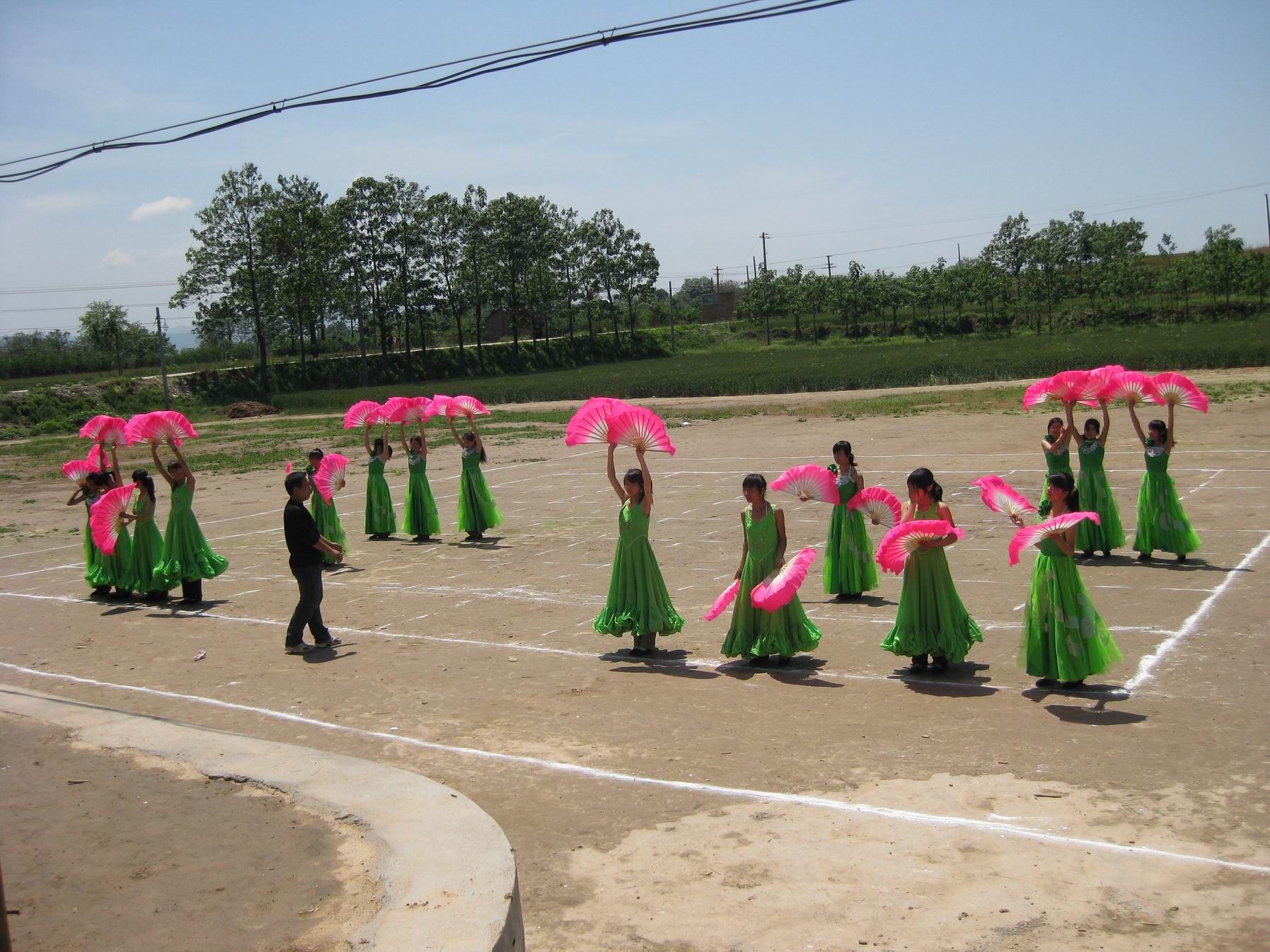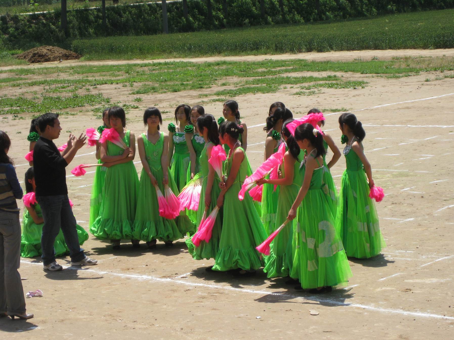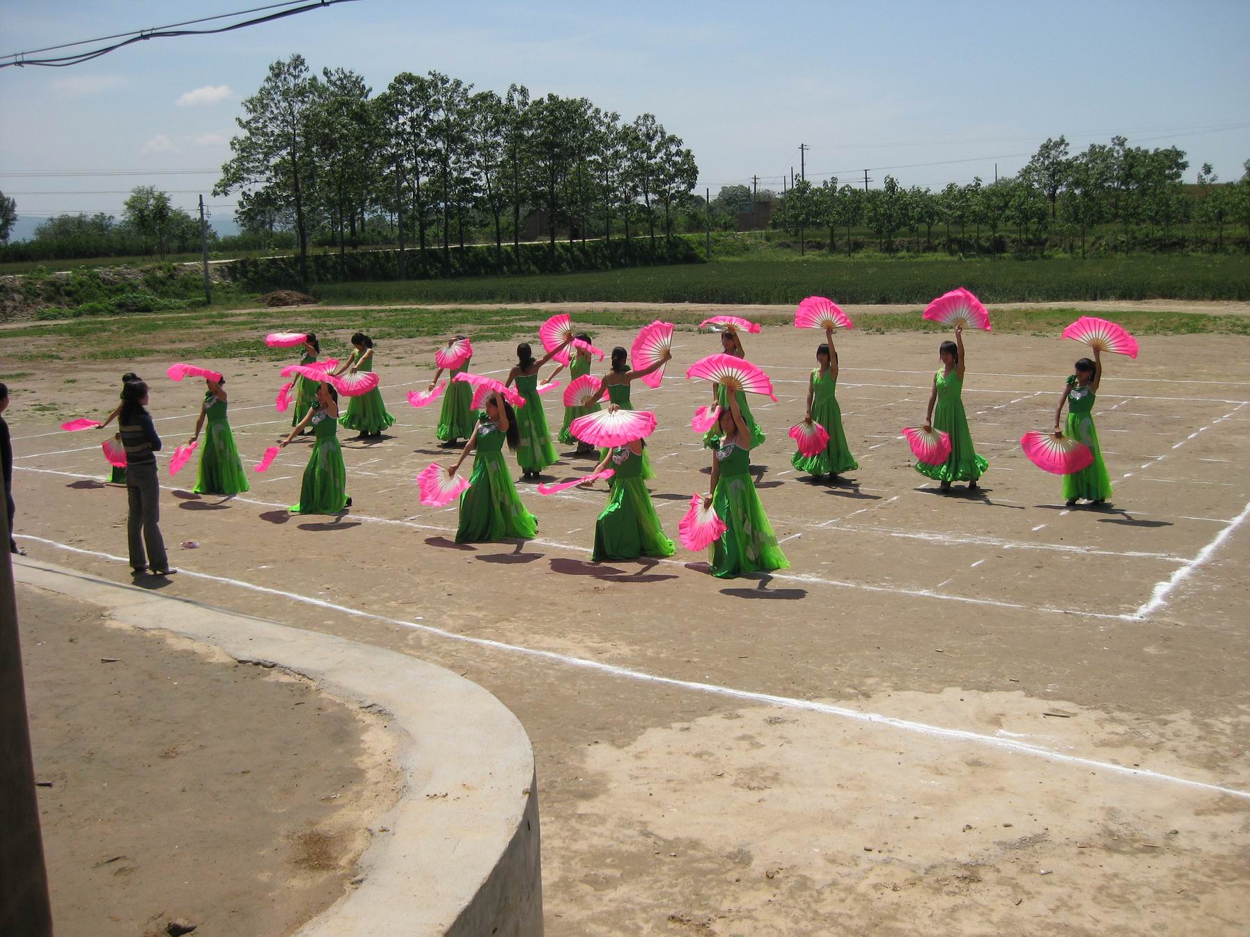 经过一早上紧张的训练,我们的动作都到位了,我们也能跟上音乐了。最后老师还让我们再练了几遍,这下我们就信心十足的等待着下午的表演。