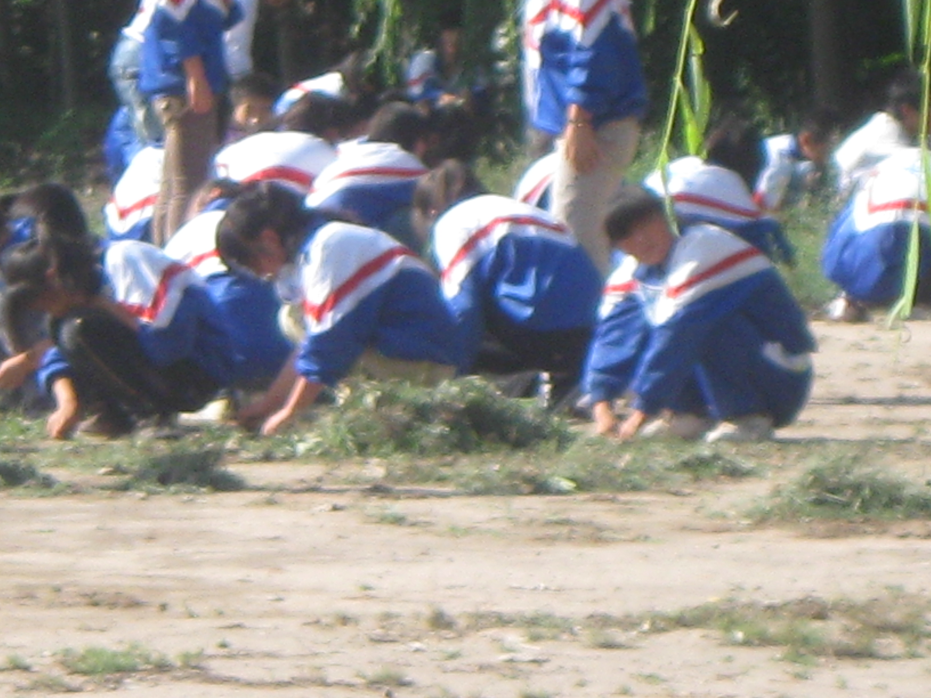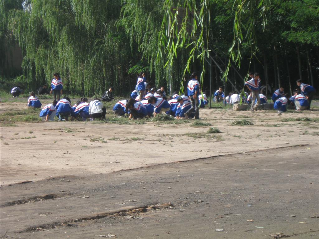 看,同学们和老师一起在"责任田"里除草,好一派景象,值得留念······