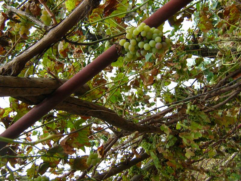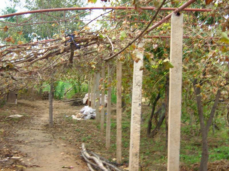 春天暖和时,把葡萄藤条从深埋的土里挖出来,进行分支,然后开始搭架,架子自然也有讲究了——首先不能太稀也不能太稠,太稀会使长出的新叶和葡萄搭空,有可能会掉下来;太稠,就会不通气,尤其是夏天,天气很热,蒸发量很大,容易造成葡萄发臭、得病。架子一般也就宽50公分吧,不能太高也不能太低,要选择通风、朝阳的一面搭。材料可以是木材或一些比较硬的东西,但不要太滑,最好还是木材,将葡萄一定要固定在葡萄架上,以免被风吹掉或下滑,架子一般成扇型,根部低,头部高,有利于通风生长。
