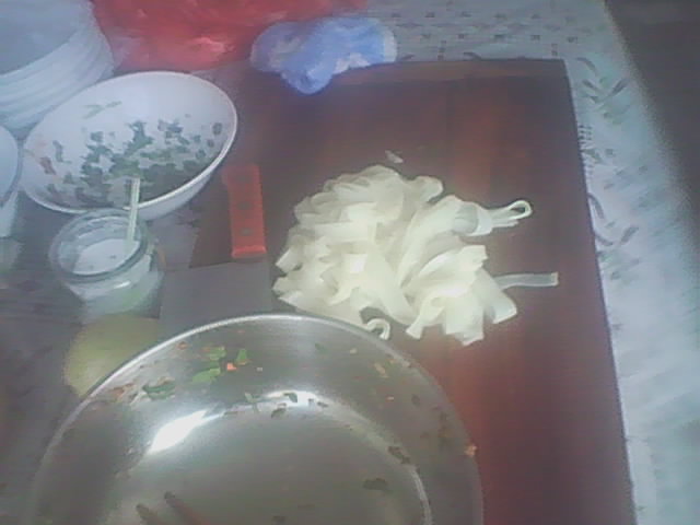 凉皮制作好的形状好似平底锅样的圆饼状,这样的形状有利于切制。切成细条后将其置入专用盆中放入适当的调料调拌后就可以食用了!