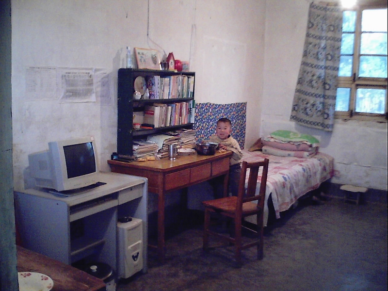 这里的老师基本上都住校,因为我们晚上要上晚自习,到10钟才结束.老师基本上都是自己做饭,他们说,这样能节省一些,也能符合自己的胃口.但你想想,这样小的房间怎么放厨具呀?老师的厨具很简单,主要是一个案板,一个煤气罐.但问题是做起饭来,油烟满房间的,附近就是床、电脑、书籍.真是难以想象.就是在这种艰苦的条件下,我们的 老师呕心沥血,孜孜不倦,培育了一批又一批的栋梁之才.
