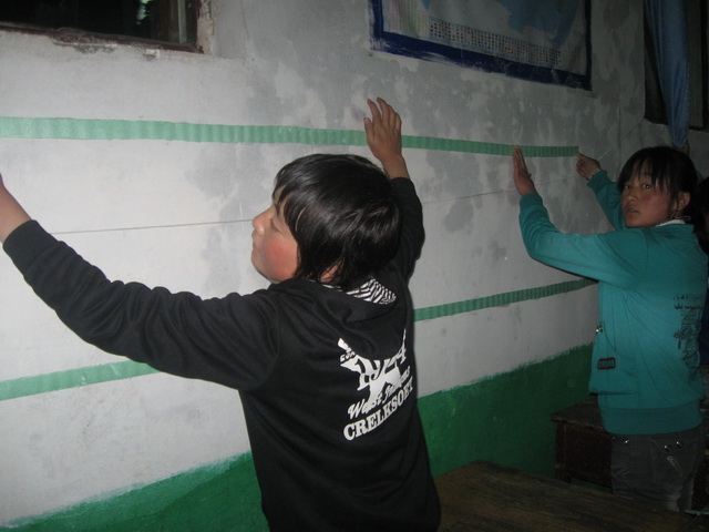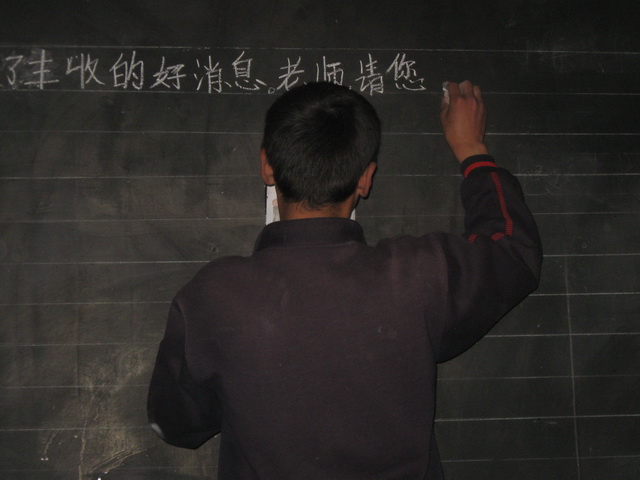 开始布置教室了。张老师和我们一起做班务栏,每一个字每一条纸都是张老师亲自贴上去的,同学们只是帮忙看一下是否贴偏了。