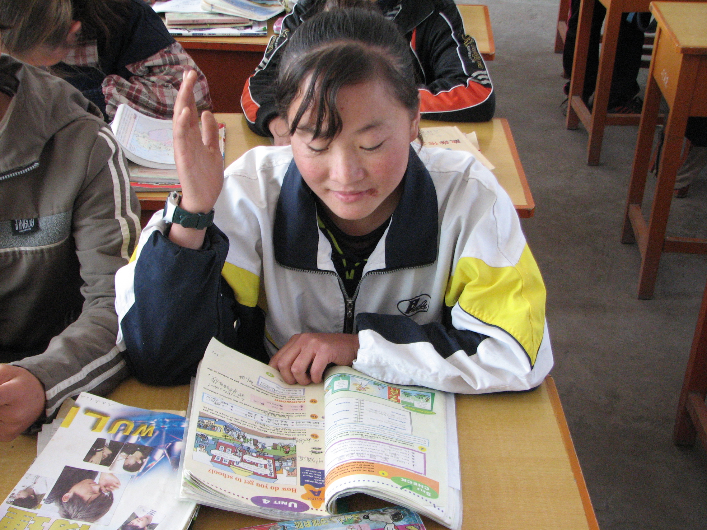我和李菲是同桌,但是每次上课,李菲总是经常举手回答问题,我非常的羡慕她。因为她可以放的开。我呢?我在问自己,而我总有一种惧怕老师的心理,我时常想回答问题,但是话到了嘴边又咽了下去。一次次看见她回答问题而获得了喜悦和收获。我就有想回答问题的冲动。那一天我终于缓缓的举起那双很久没有举起的手了,这时我的心咚咚的跳着,好像快要跳出来了。听见老师叫我的名字,我的心就提到嗓子眼了,看见老师鼓励地笑容,我终于尝到了和李菲一样甜甜的滋味。没想到,在李菲的影响下,我也收获了笑容,收获了自己未尝有过的勇敢。怪不得李菲经常鼓励让我回答问题,但我迟迟不肯主动回答问题,她经常的劝导了,给我说回答问题其实对以自己的知识增长和自己心理发展是有好处的。我听了,我要自己慢慢改变。