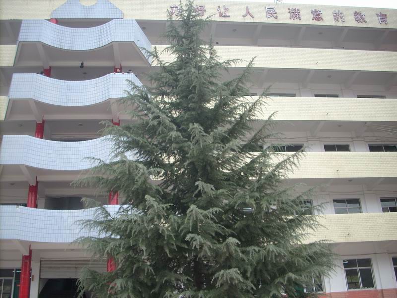 在之江中学的校园里有四棵高大而又茂盛的雪松,它们长在教学楼前的阶梯旁边,每天都在默默无闻地为老师和学生们做着贡献。使老师和学生们生活在一个舒适的环境里。使老师们在工作的时候有一个好心情,学生在学习时也有一个好心情。