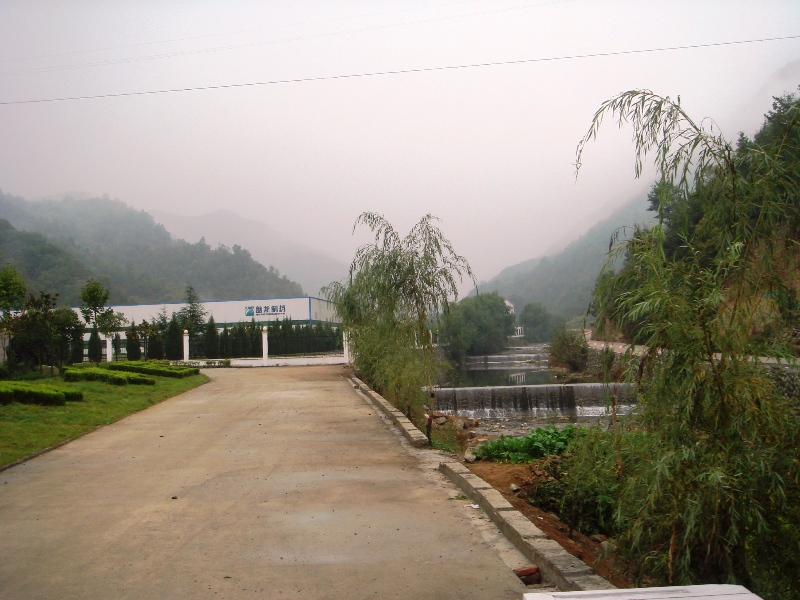 这就是盘龙制药厂外面一角的景观,一条宽阔的道路像一座桥一样架在河面上。周围的树木葱葱郁郁,空气新鲜,都为制药提供了优良的环境。