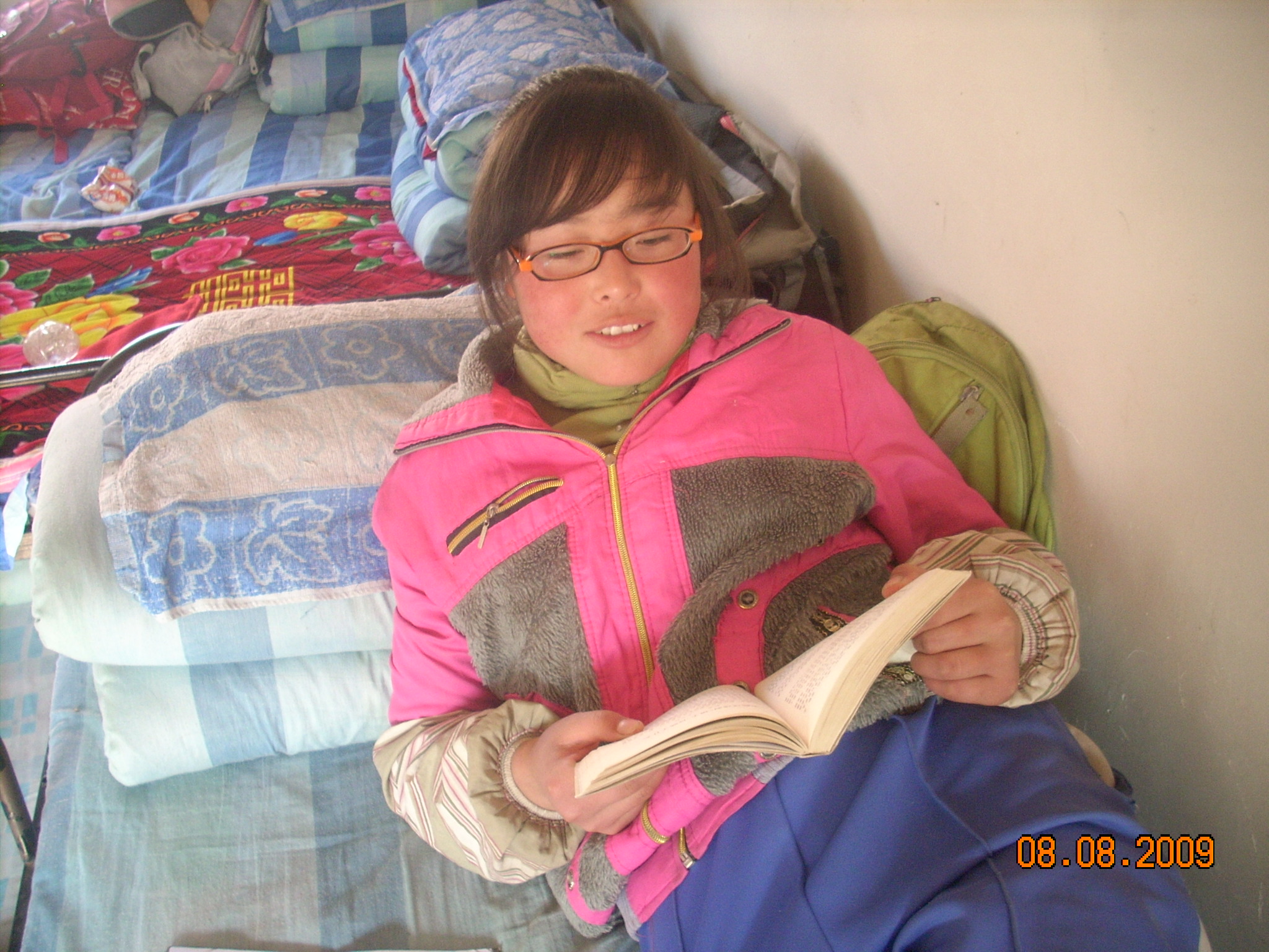 瞧,她看得认真啊!她就是我的一位特别热爱学习的室友 ,一位回族的小姑娘.