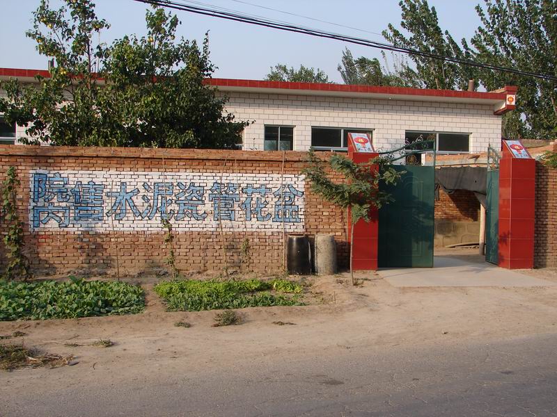 "院内出售水泥",呵,这家盖有小康平房的主人想法不错吧,他具有在路边的得天独厚的条件来为招揽自己的小生意做广告呢。只是对广告的投资还不够,不能像那些商家那么大方,使用鲜艳的色彩来吸引人们,对于那些粗心的人或者视力不好的人,恐怕是起不到作用的。