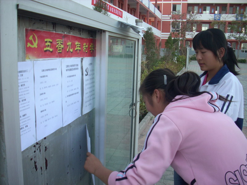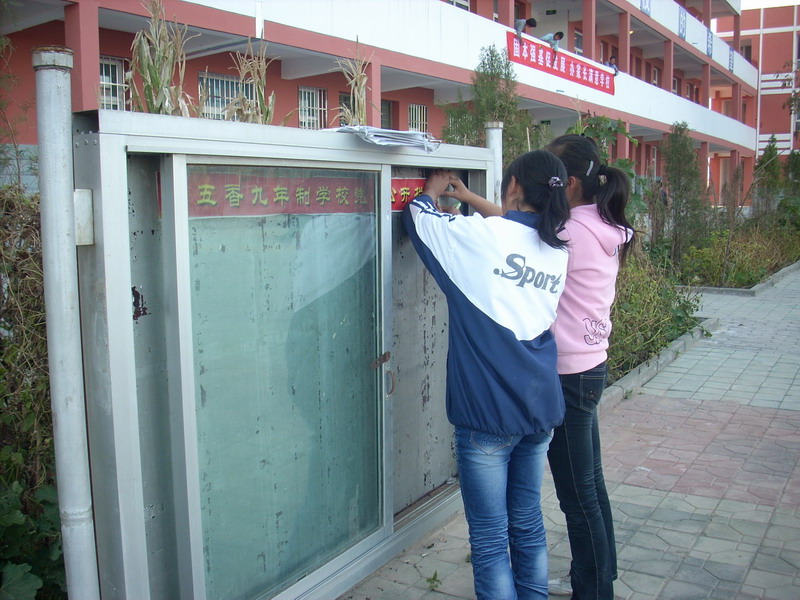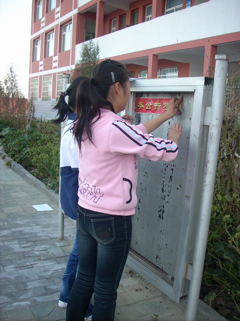 每个人都劳动过,也都亲身体会过,但不同的劳动有着不同的体会,在校园里我们看到的每一处变化。都记在我们的心里。然而最起眼的就是校园里的宣传栏。这两个宣传栏里面贴的是学校各种宣传资料,和学校校务公开内容,还有各阶段学校的主要工作任务,学校这学期来的主要工作的方向。