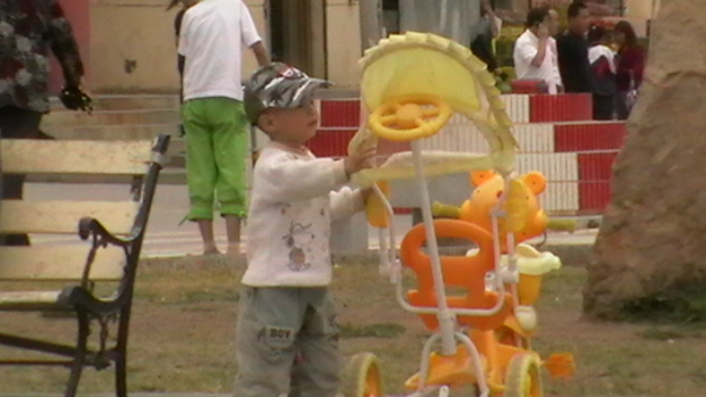小车在广场上出现了,小孩子的眼光突然盯住了它,那份渴望与快乐在此刻溶为一体。我想有时候,我玩的时候突然想到自己的作业没有完成,手中的玩物顿时停住了,今天上县城给我的感觉就是县城空间大,留住人视野的地方太多太多了。