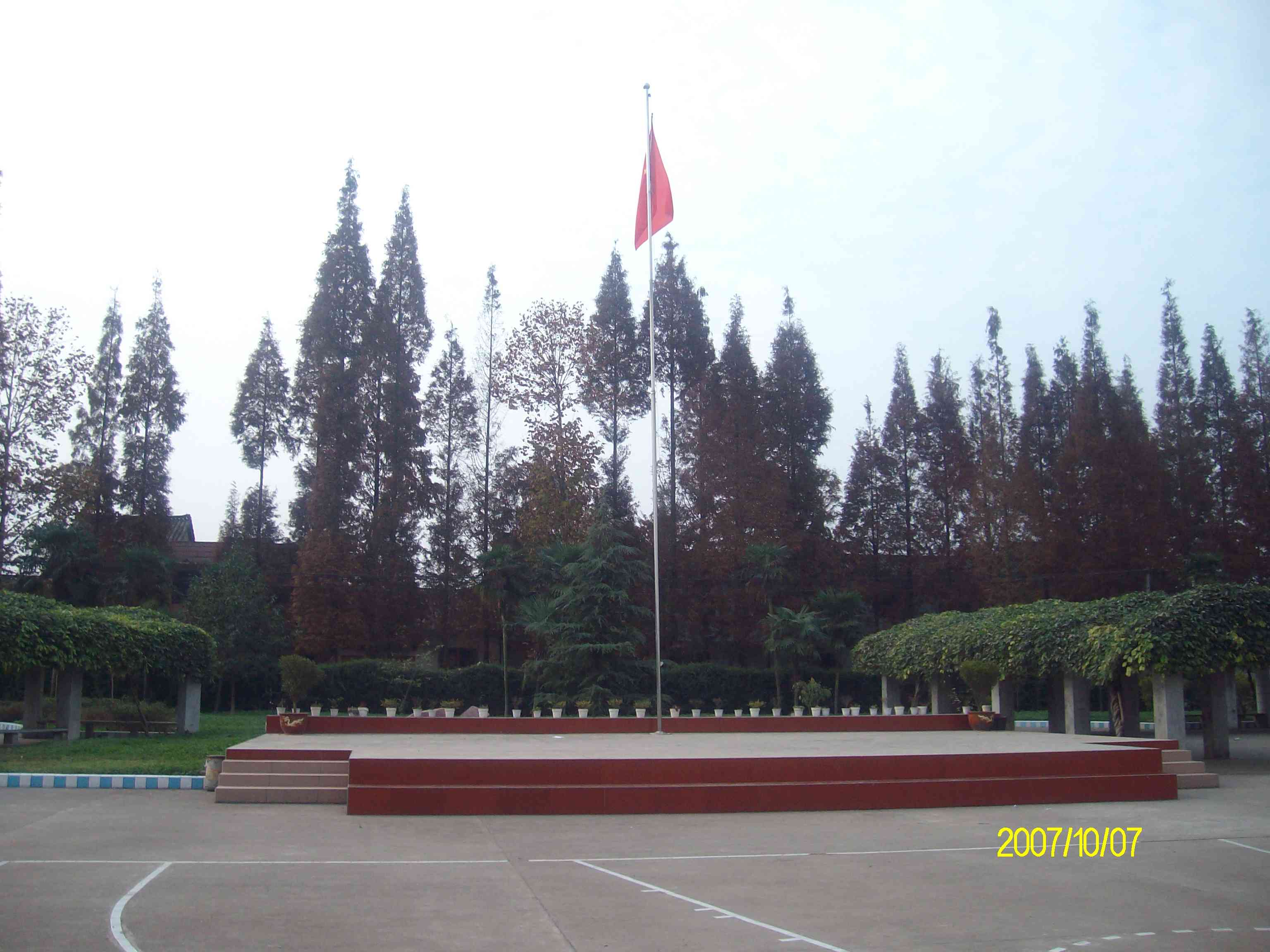 长方形的旗台是学校中最美的地方了。每周星期一,全校师生齐聚旗台前,伴着国歌,注视着五星红旗冉冉升起,师生代表作国旗下的演讲,获得文明寝室和流动红旗的班级上台领奖,喜悦之情溢于言表。